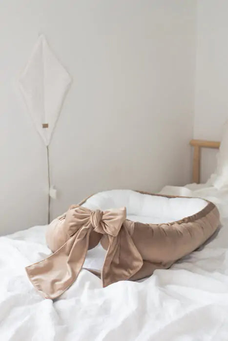 Dit leuke babynest van fluweel met katoen is beschikbaar in deze 5 kleuren: Cream Pearl, Beige, Dirty Pink, Mint, Light Gray.