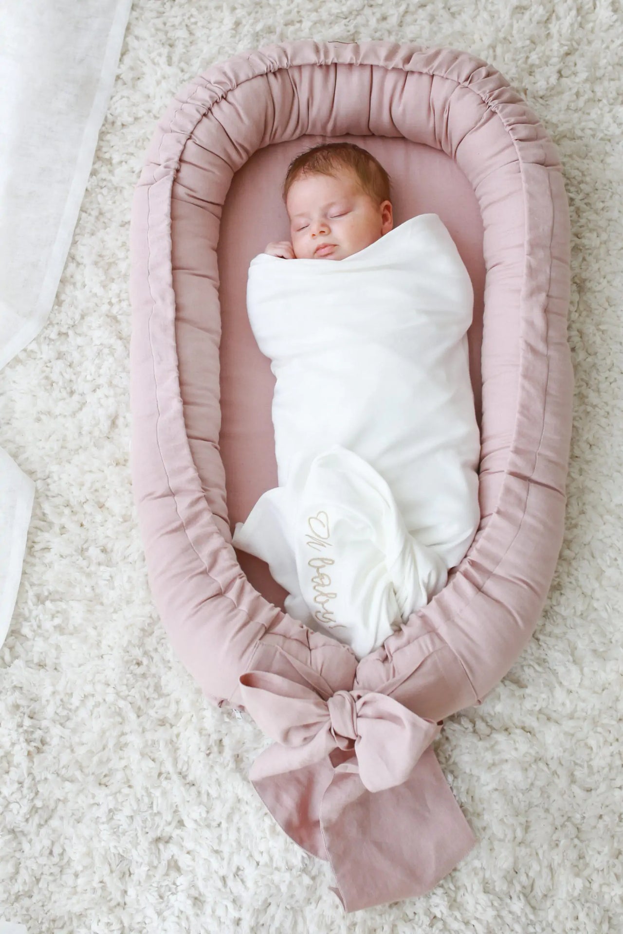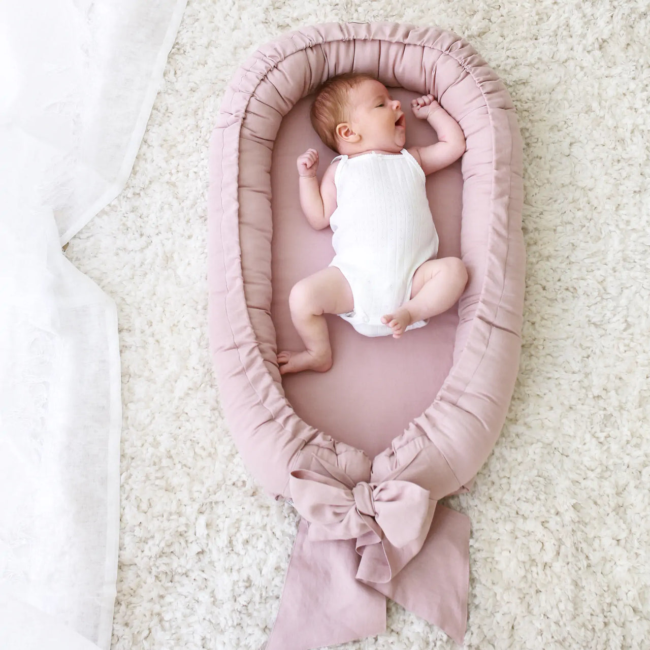 Babyly | Linnen Babynestje Strik | Powder Pink
